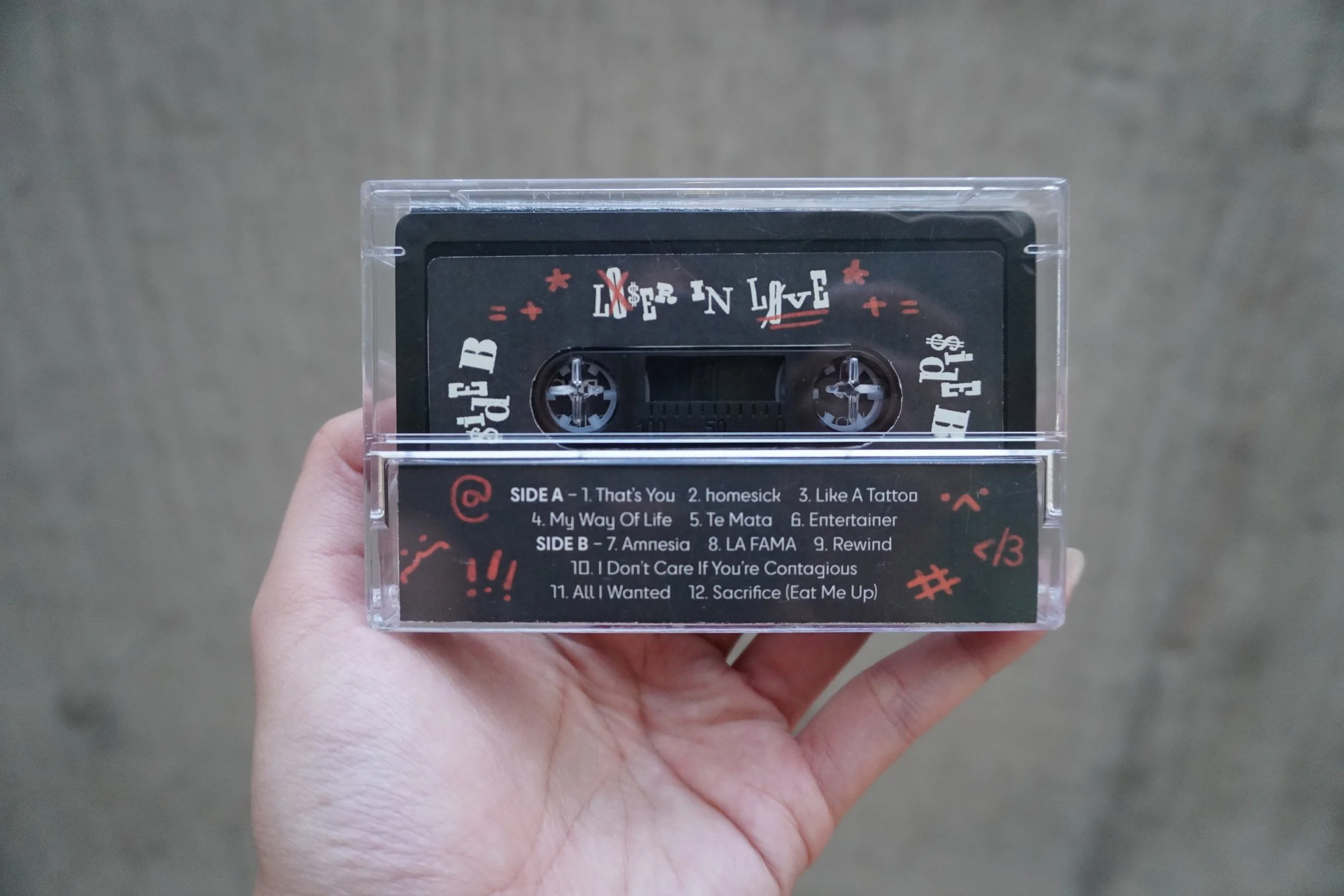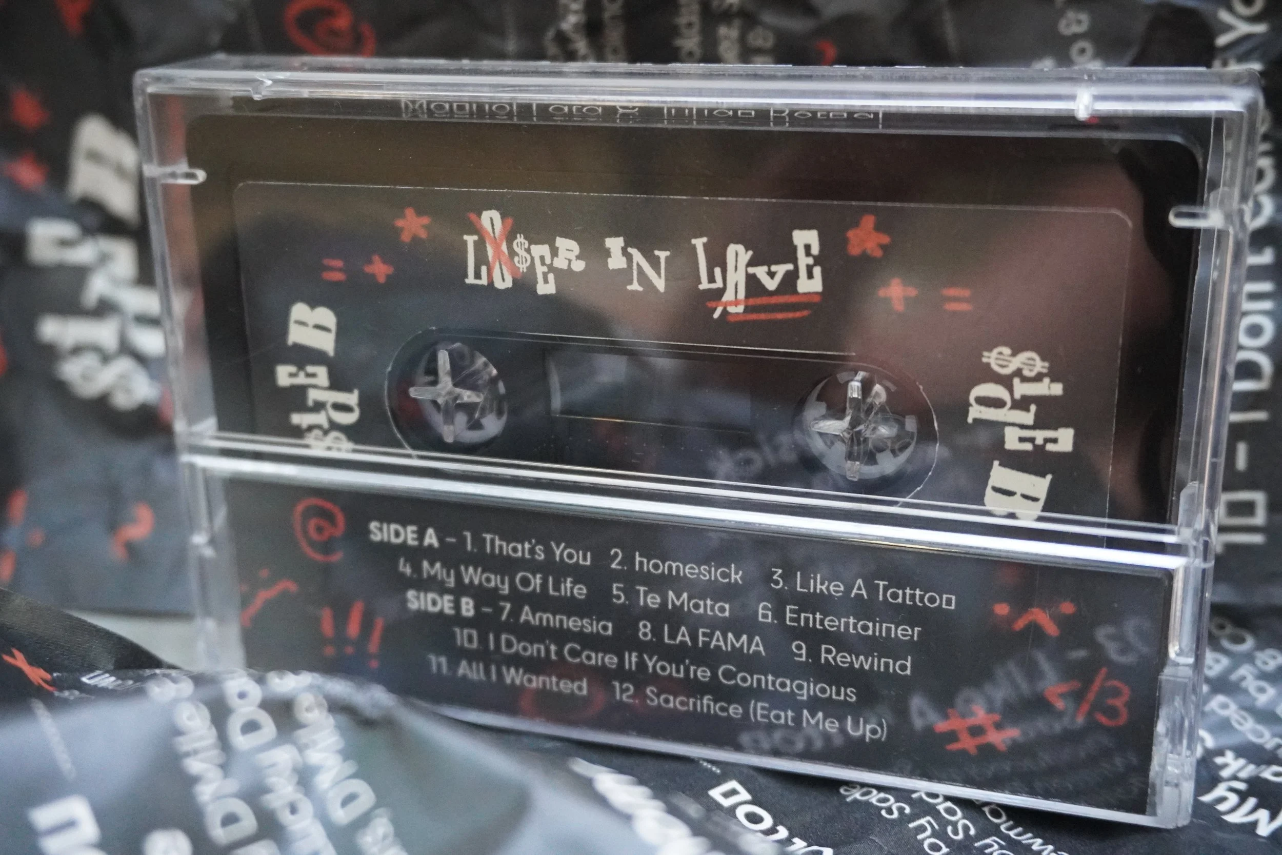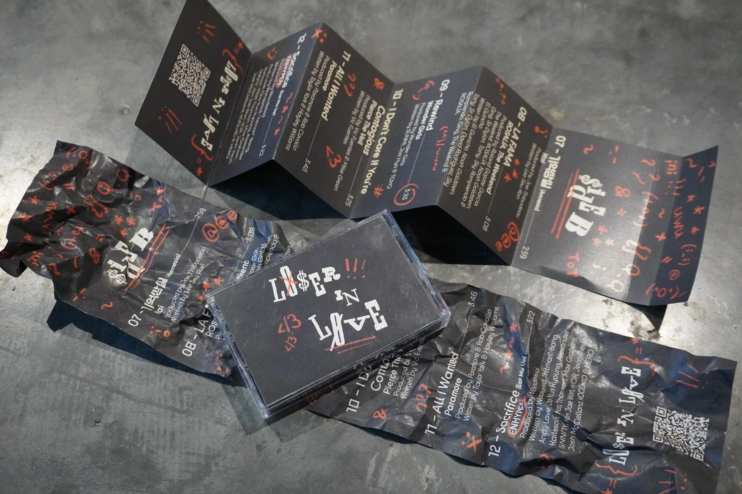 A double-sided insert that visualizes the mixtape’s emotional arc—each track illustrated as a playful blend of heartbreak, chaos, and self-awareness in bold vector form.